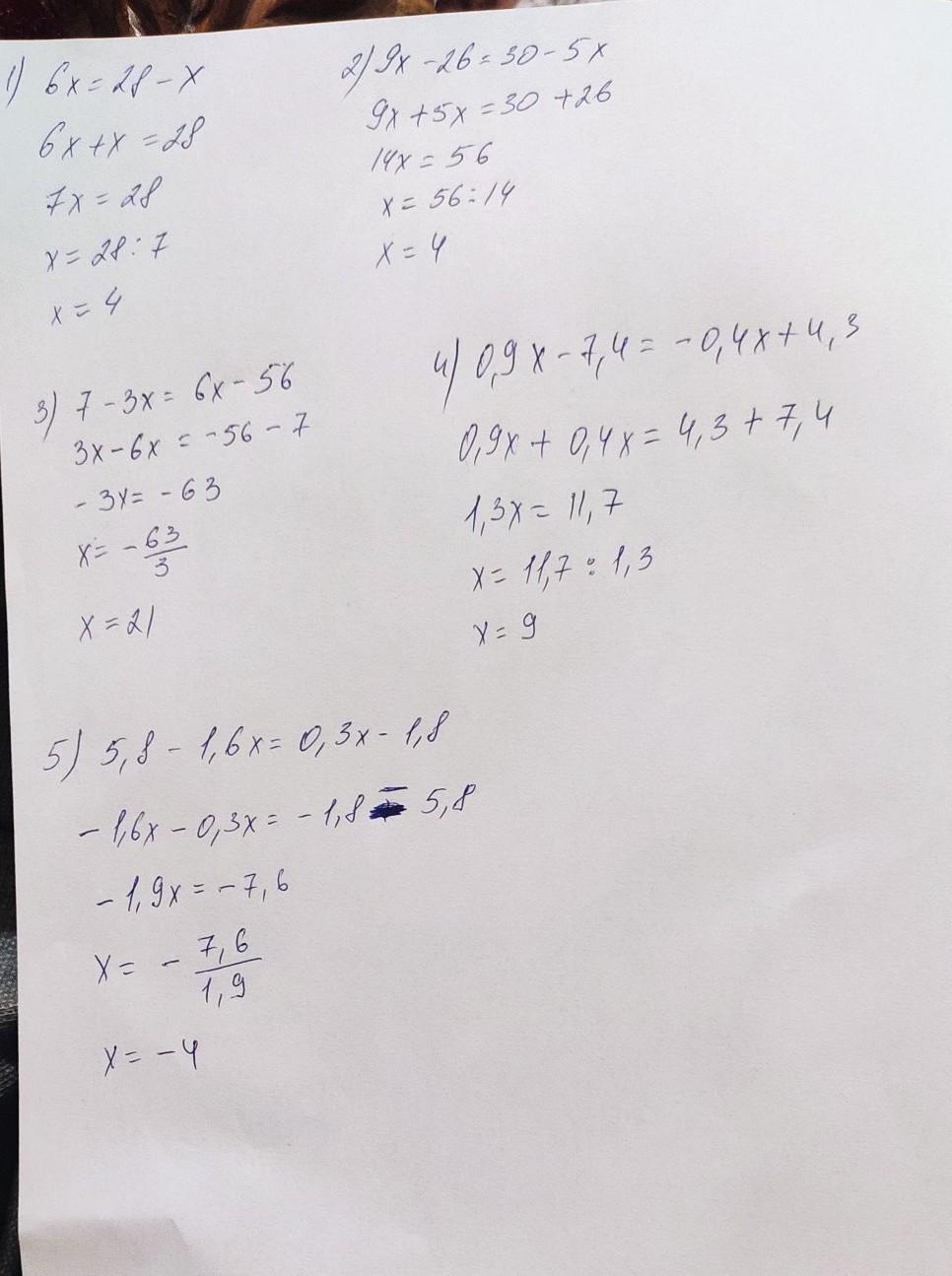 Переносим x в одну, числа в другую часть с противоположным знаком: