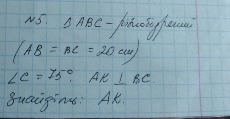 АК/АВ=sinB. AK=AB*sin30°=20*1/2=10см