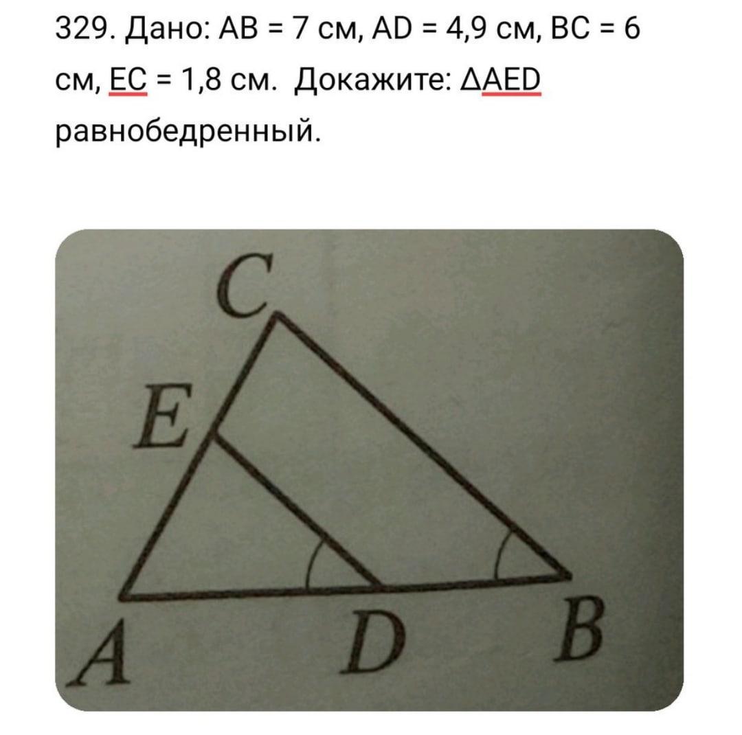 ae = ed = 4,2 см, поэтому треуглоник aed равнобедренный
