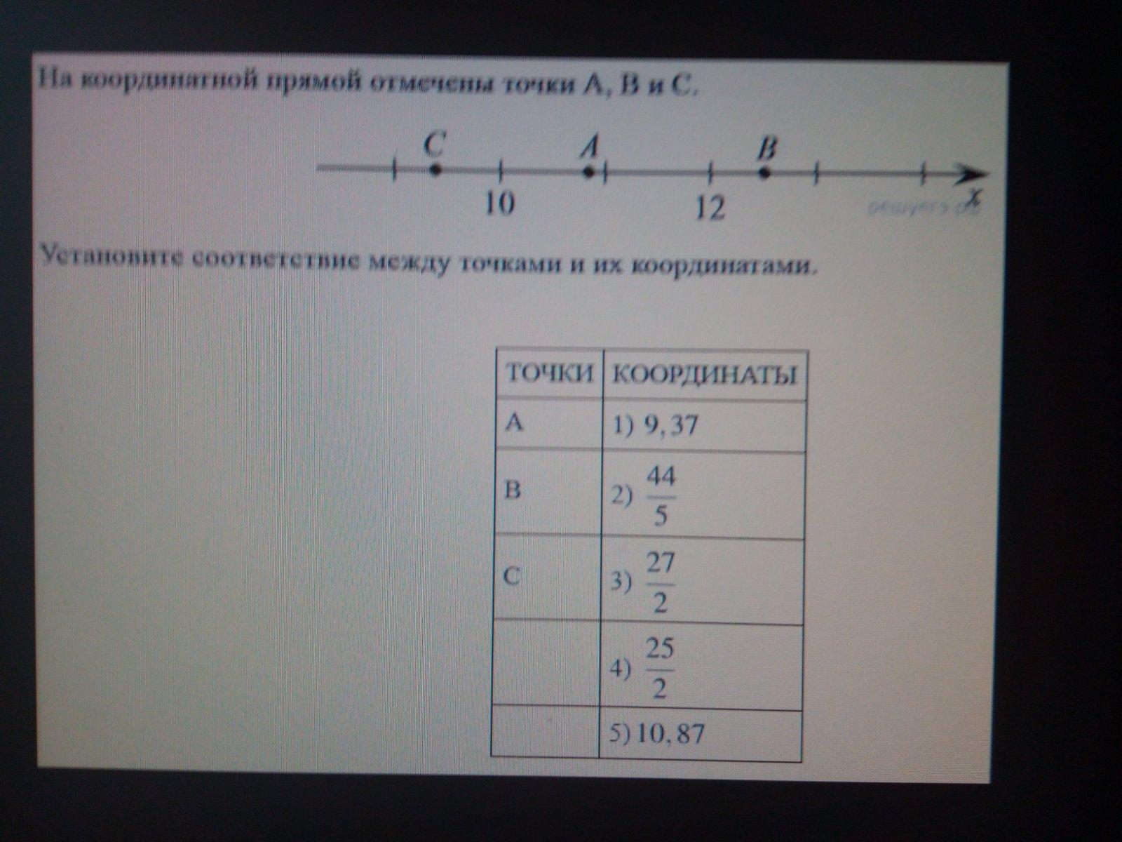 В ответ запишите только номера ответов, соответствующие координатам точек A, B, и C без пробелов, скобок и запятых. Например: 325