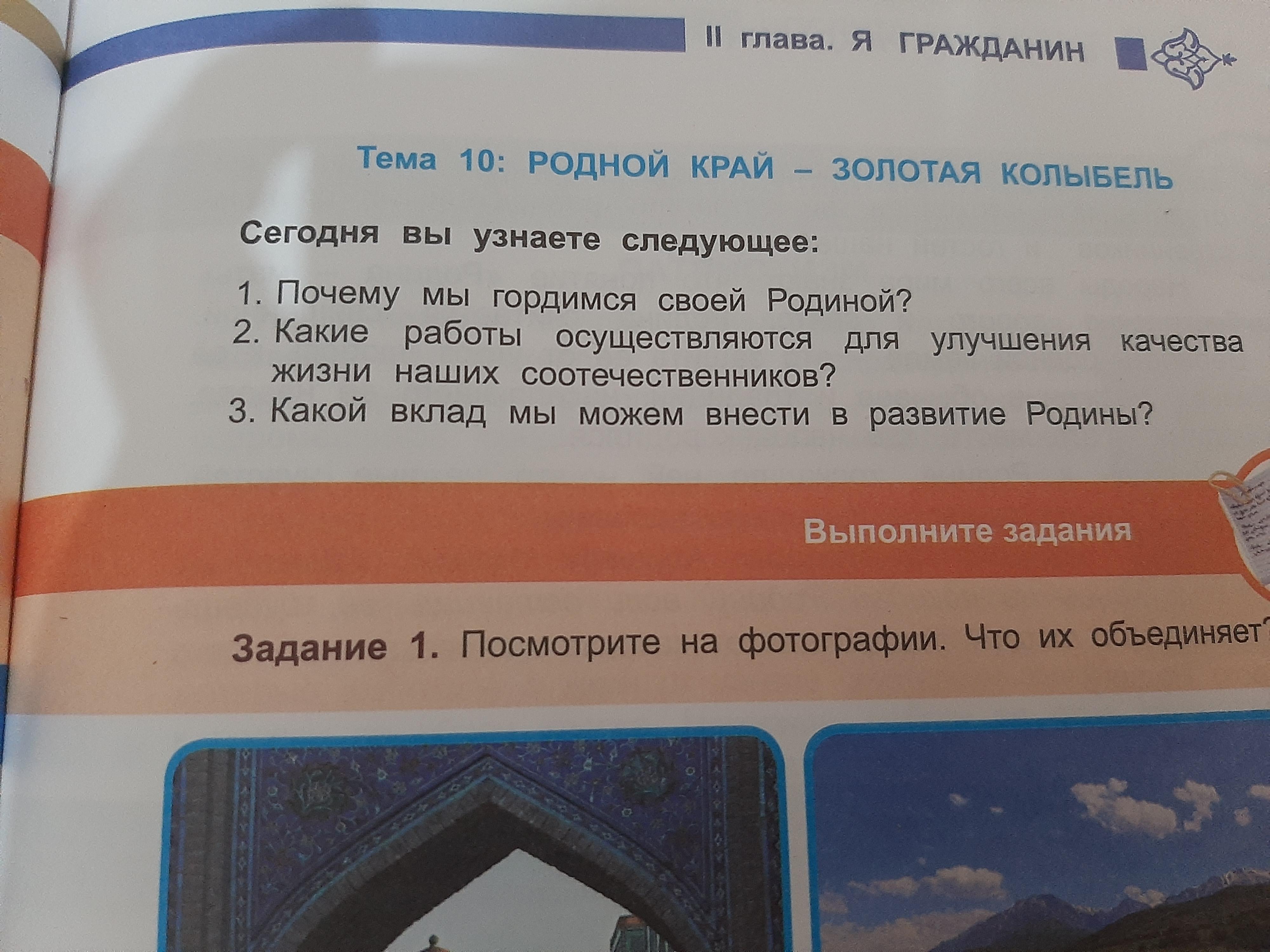 1) Мы гордимся Родиной потомучто она большая, Чистая и хорошая. В ней мы живем в мире и согласий. В эту родину приходят куча туристов и мы этим гордимся. Мы живем в моменте где главная проблема этот учеба и работа по этому мы гордимя своей родиной.