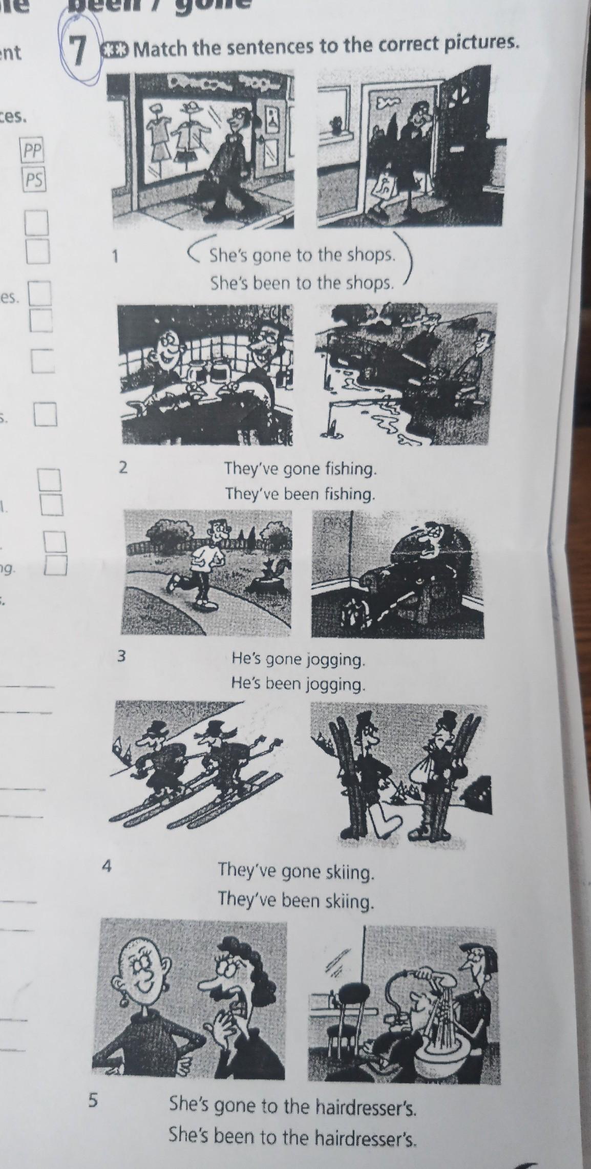 1. Она ушла в магазины. Она была в магазинах. 2. Они пошли на рыбалку. Они рыбачили.