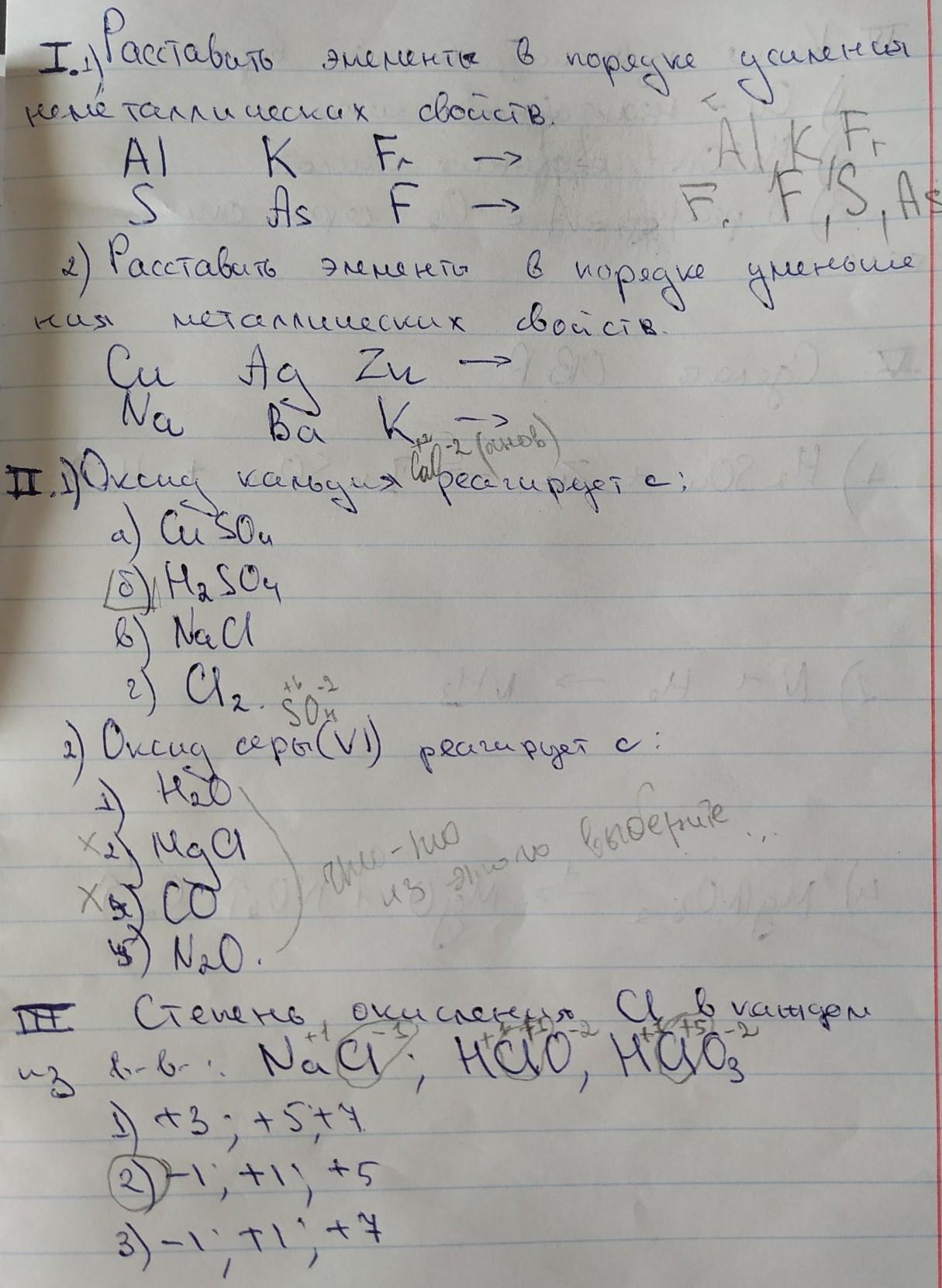 1) 1. Fr, K, Al
