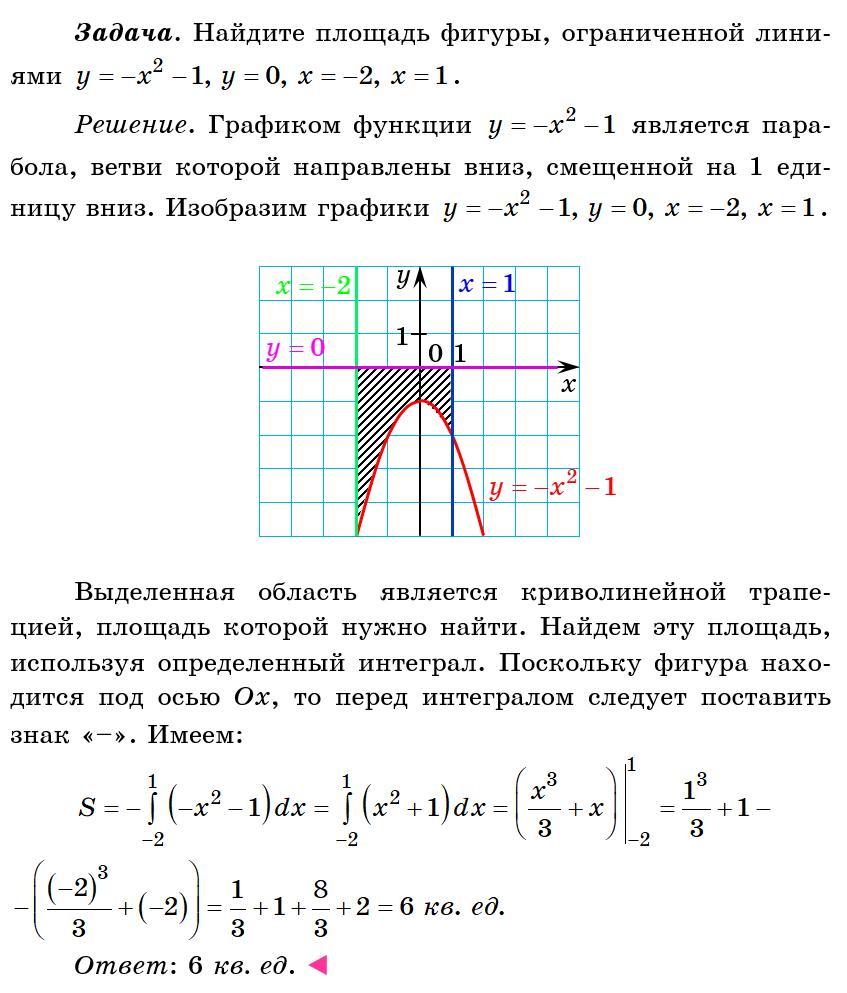 Примечание. Площадь криволинейной трапеции (фигура, ограниченная графиком непрерывной на промежутке
