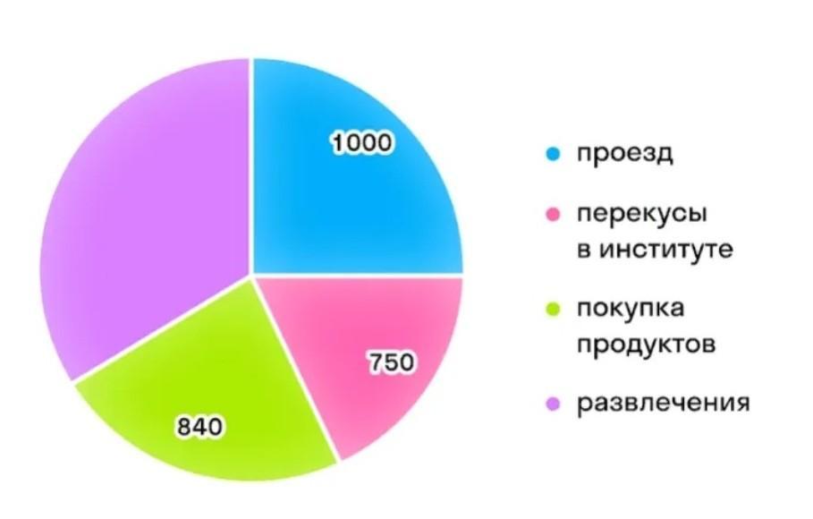 на диаграмме ниже показаны траты Наташи за неделю. Всего за неделю Наташа потратила 4000 рублей