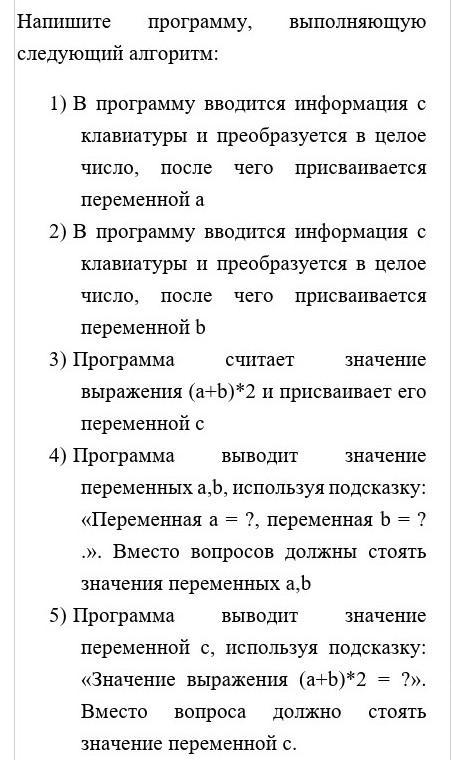 print('Значение выражения (a+b)*2 = ', c, '.', sep='')