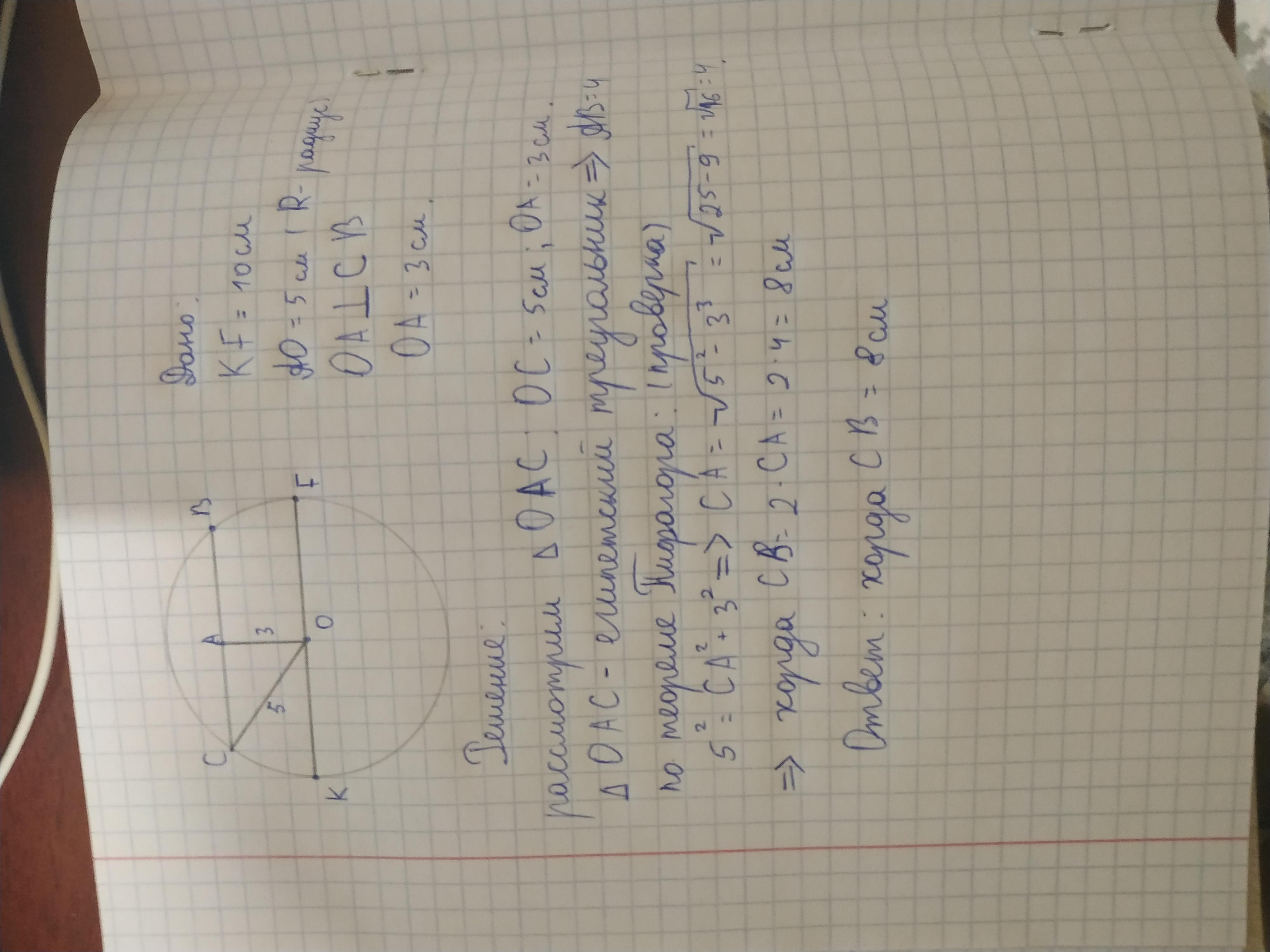 СРОЧНО! В круге диаметром 10 см проведена хорда, удаленная от центра на 3 см. Длина хорды равна ...