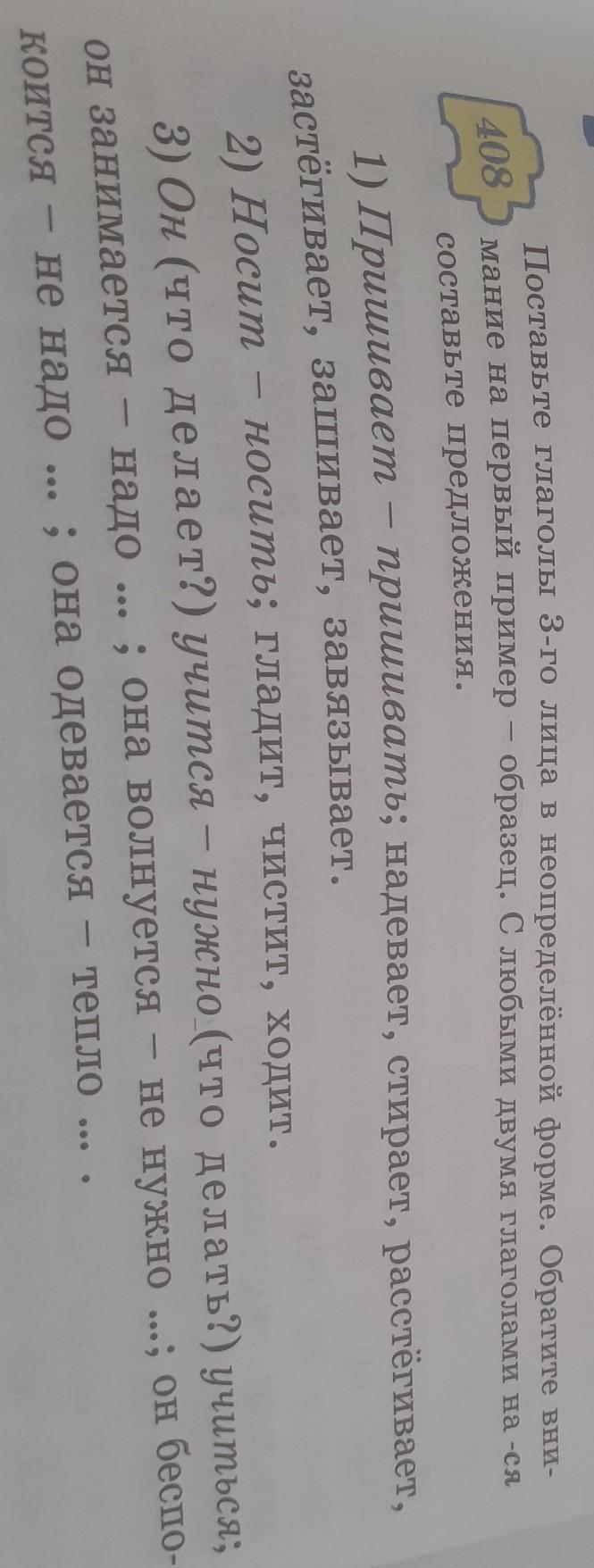 1) Надевает- надевать; Стирает-стирать; Расстёгивает- расстёгивать; Застёгивает- застегать; Зашивает- зашивать; Завязывает-завязывать.