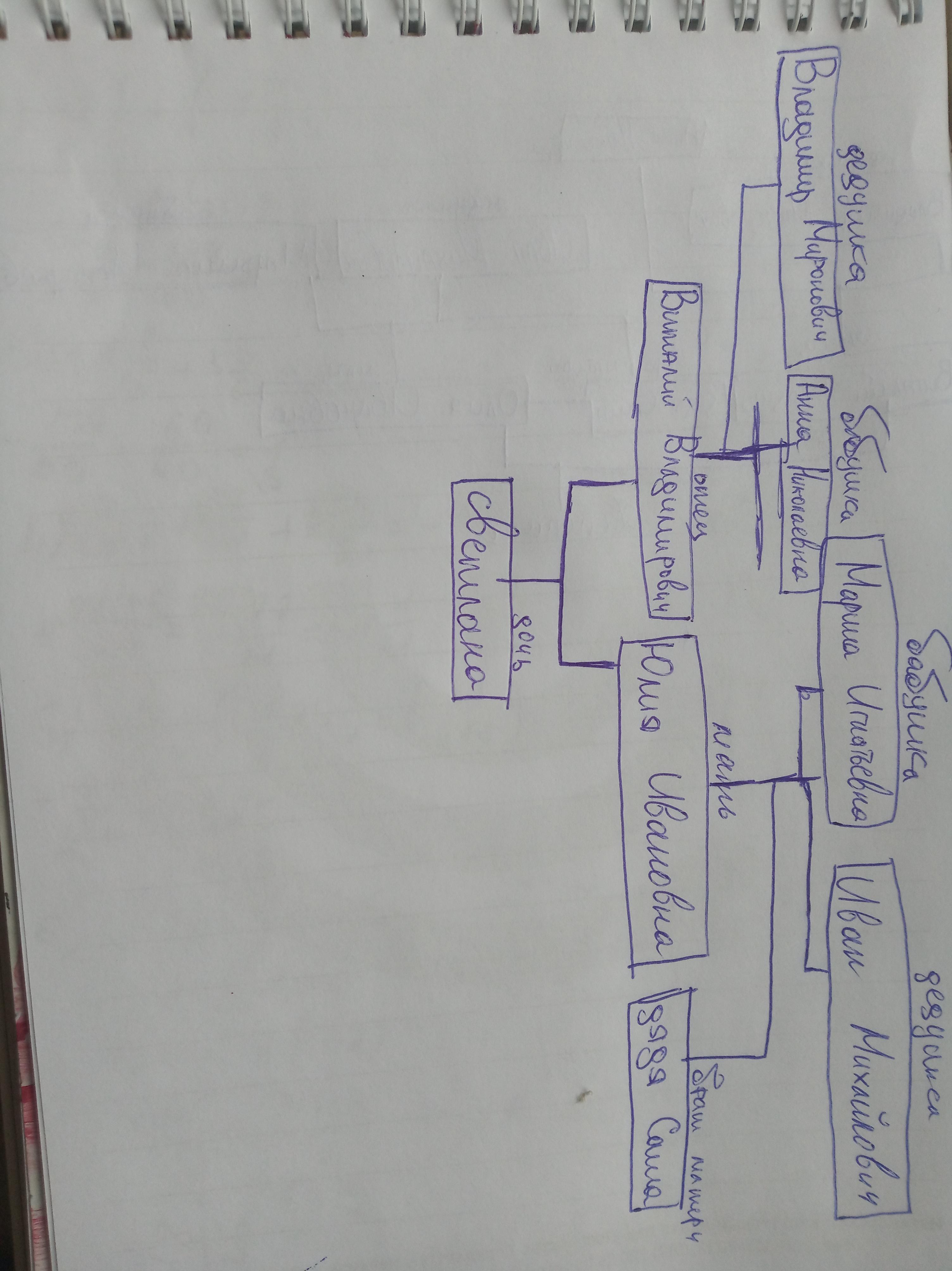 Родственные связи можно представить в виде схемы. Например, на схеме ниже