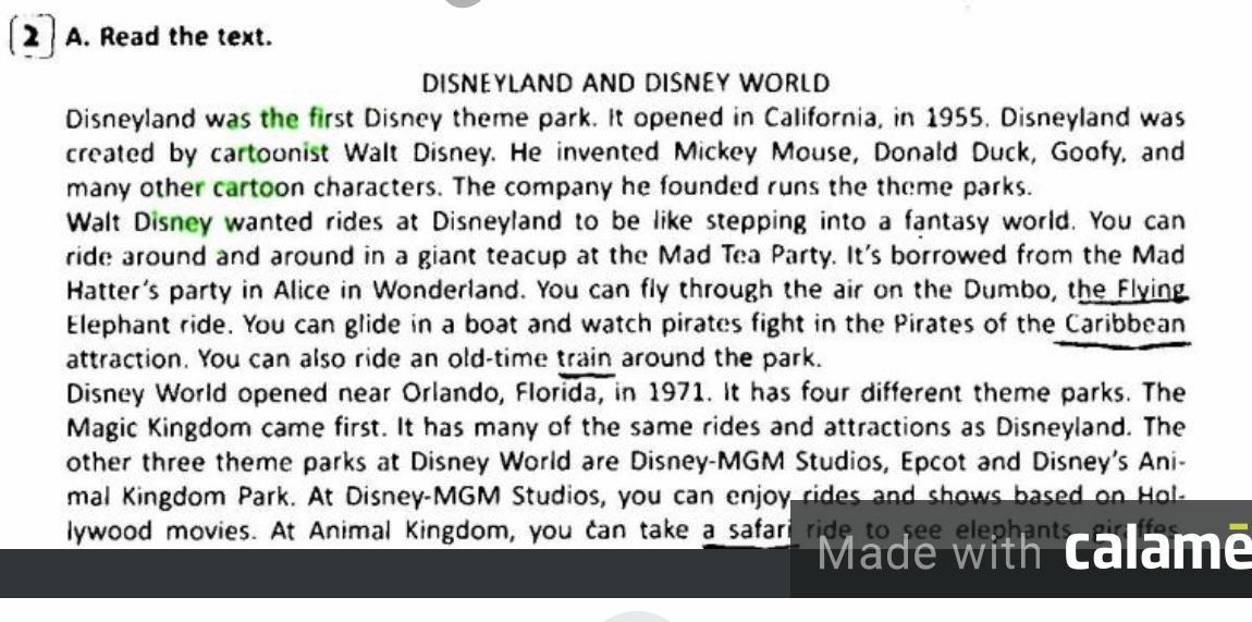Disneyland; Disney World that has 4 parks - the Magic Kingdom, Disney-MGM Studios, Epcot and Disney's Animal Kingdom Park; Blizzard Beach and Typhoon Lagoon