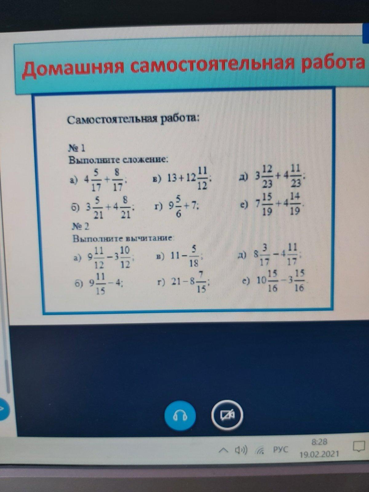 б) 3 5/21 + 4 8/21 = 7 13/21
