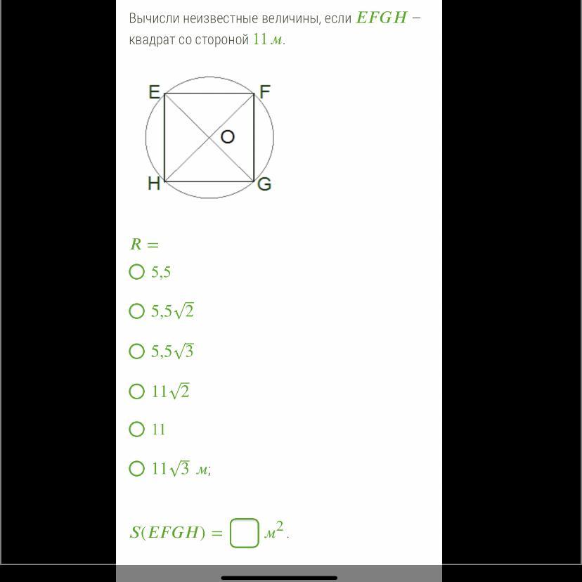 ЕG=корень((ЕF) ^2+(FG)^2)=корень(11^2+11^2)=