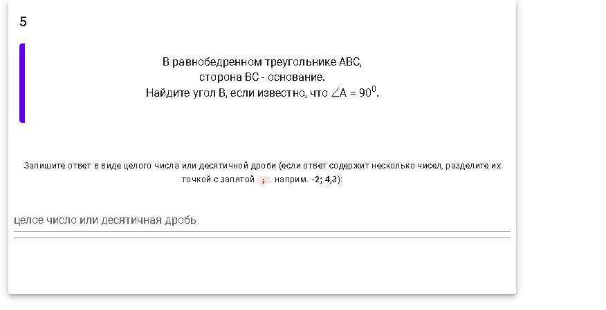 90° : 2 = 45° (∠В и ∠С)