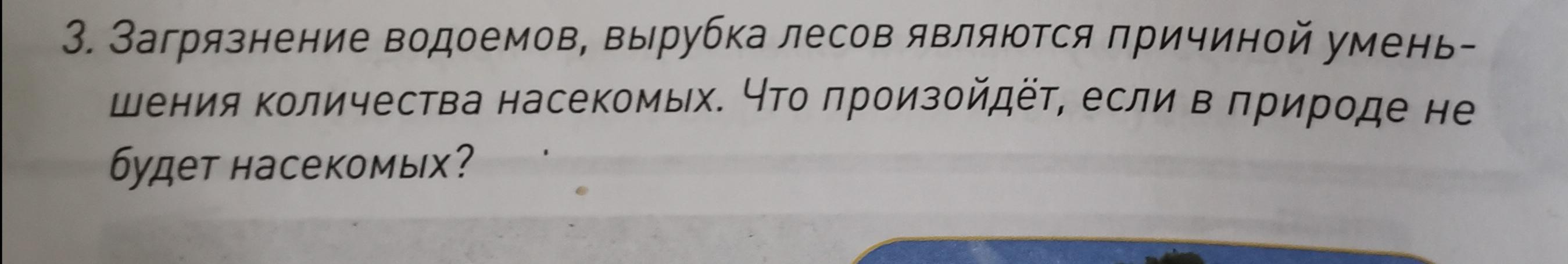 Вслед за исчезновением насекомых исчезнут и опыляемые ими растения, а вслед за ними вымрут и животные, поедающие растения. Апокалиптическую картину дополнит тот факт, что все мертвые растения и туши животных — и человеческие тела — будут разлагаться гораздо медленнее, чем в мире с насекомыми.