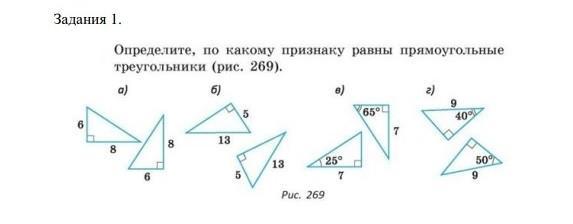 Определите, по какому признаку равны прямоугольные треугольники! Пожалуйста помогите