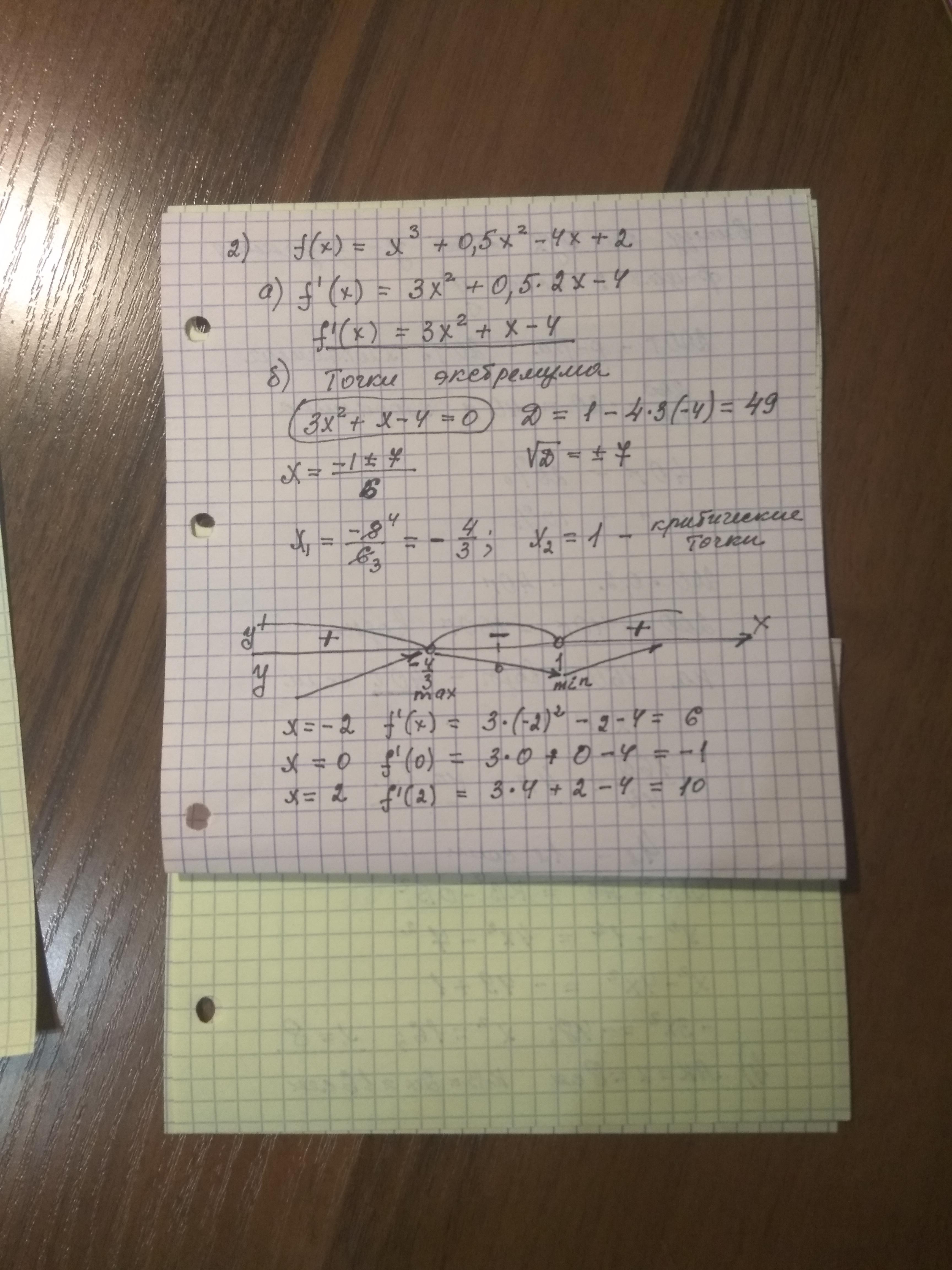 2)Определите промежутки монотонности и точки экстремума функции f(x)=x³+0,5x²-4x+2