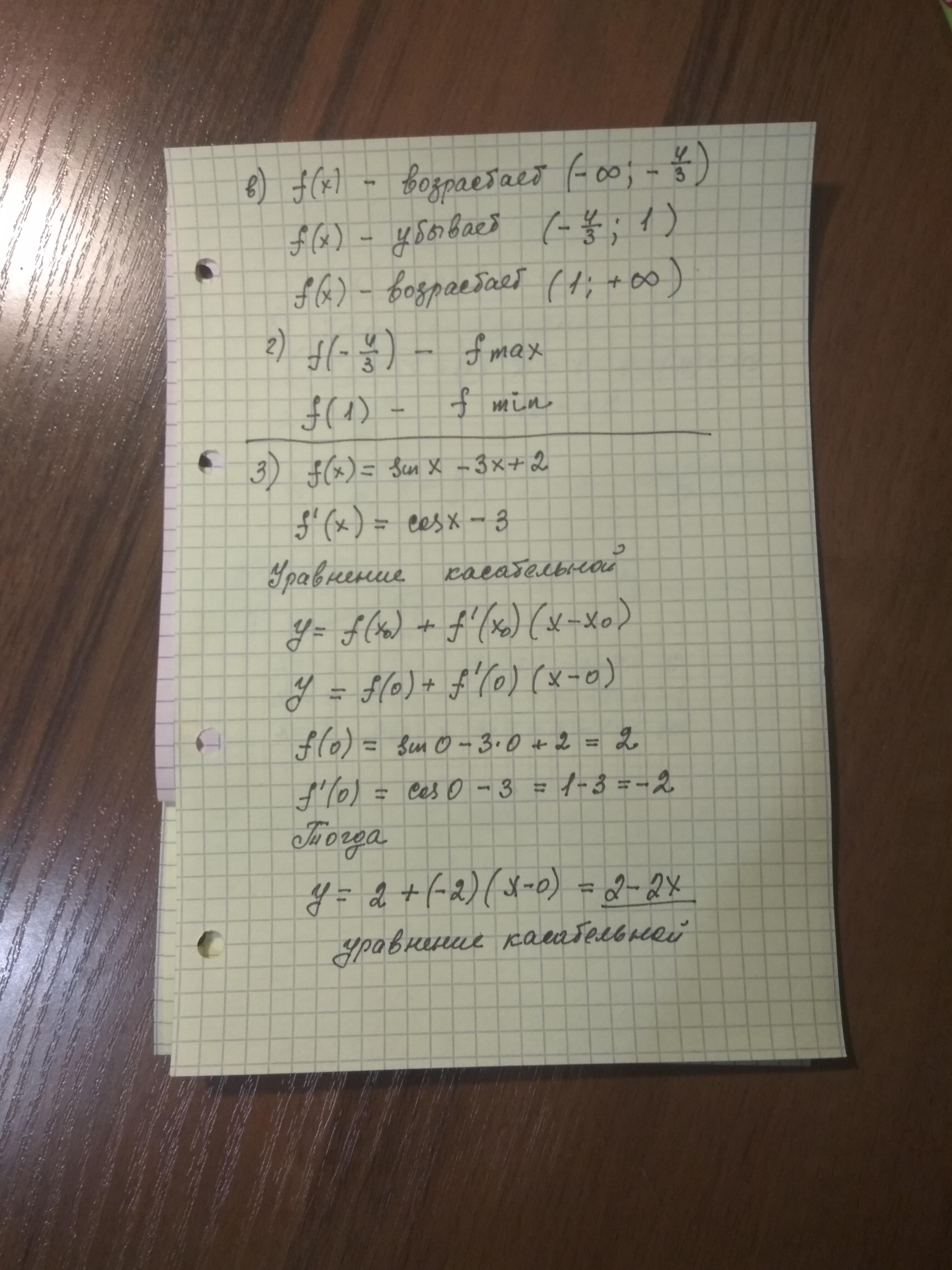 3)Запишите уравнение касательной к графику функции f(x)=sinx-3x+2 в точке х0=0