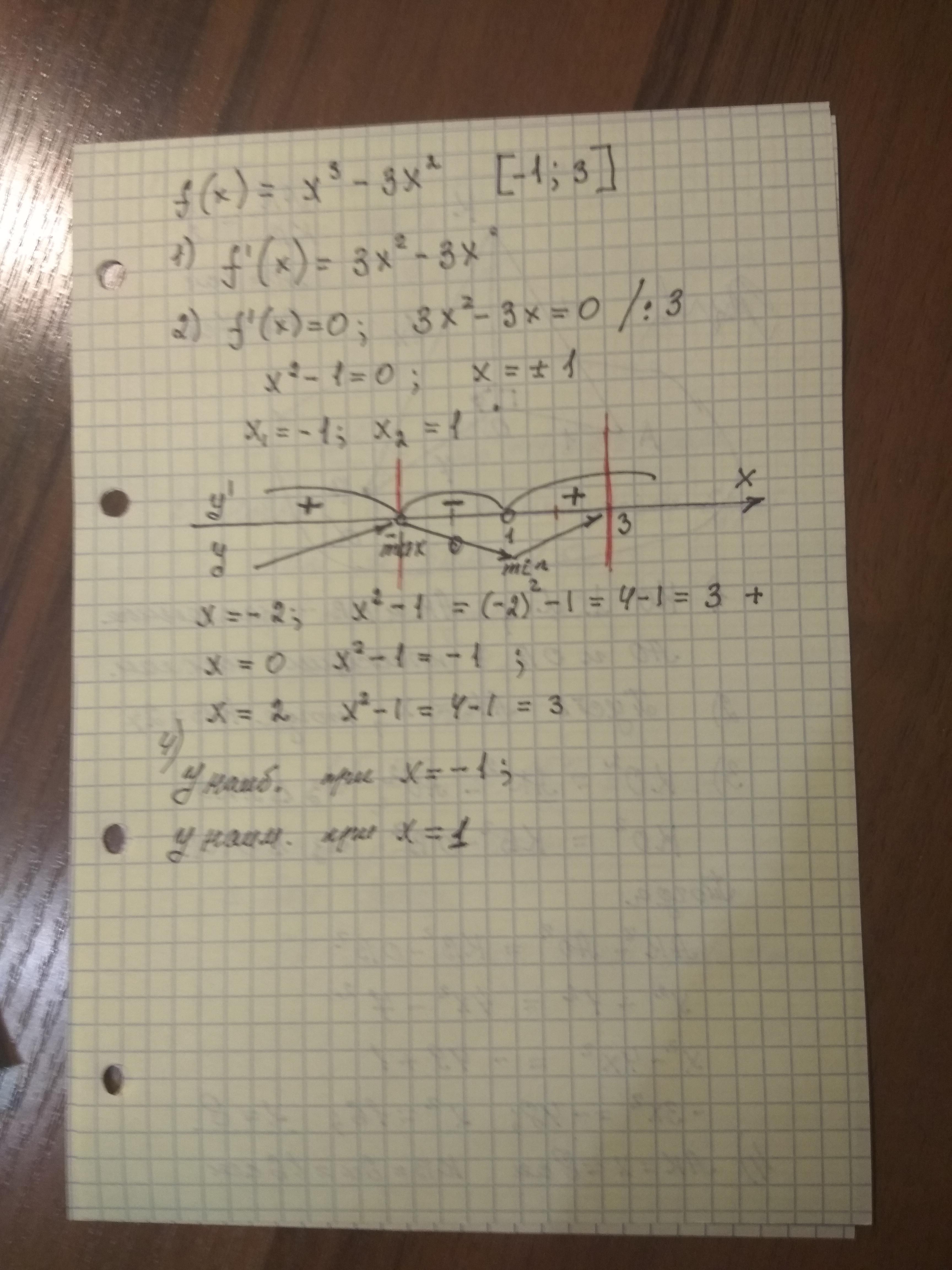 1)найдите наибольшее и наименьшее значение f(x)=x³-3x², на отрезке [-1:3]