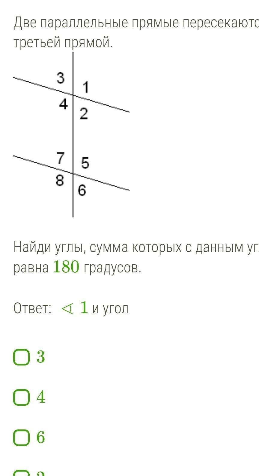 Найди углы, сумма которых с данным углом равна 180 градусов.