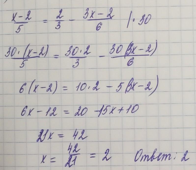 (х-2)/5=2/3-(3х-2)/6