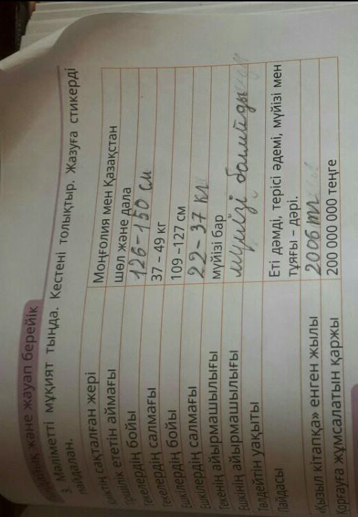 3. Мәліметті мұқият тыңда. Кестені толықтыр. Жазуға сти