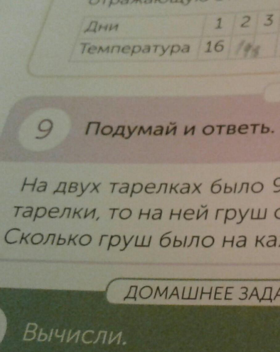 на двух тарелках было 9 груш Если забрать одну с первой тарелки то на ней груз станет в три раза больше чем на второй Сколько груш было на каждой тарелке изначально
