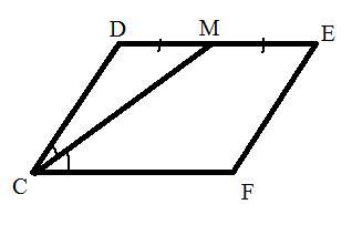 В параллелограмме CDEF точка M - середина стороны DE. CM - биссектриса угла DCF. Докажите, что сторона DE параллелограмма CDEF в два раза больше стороны CD.