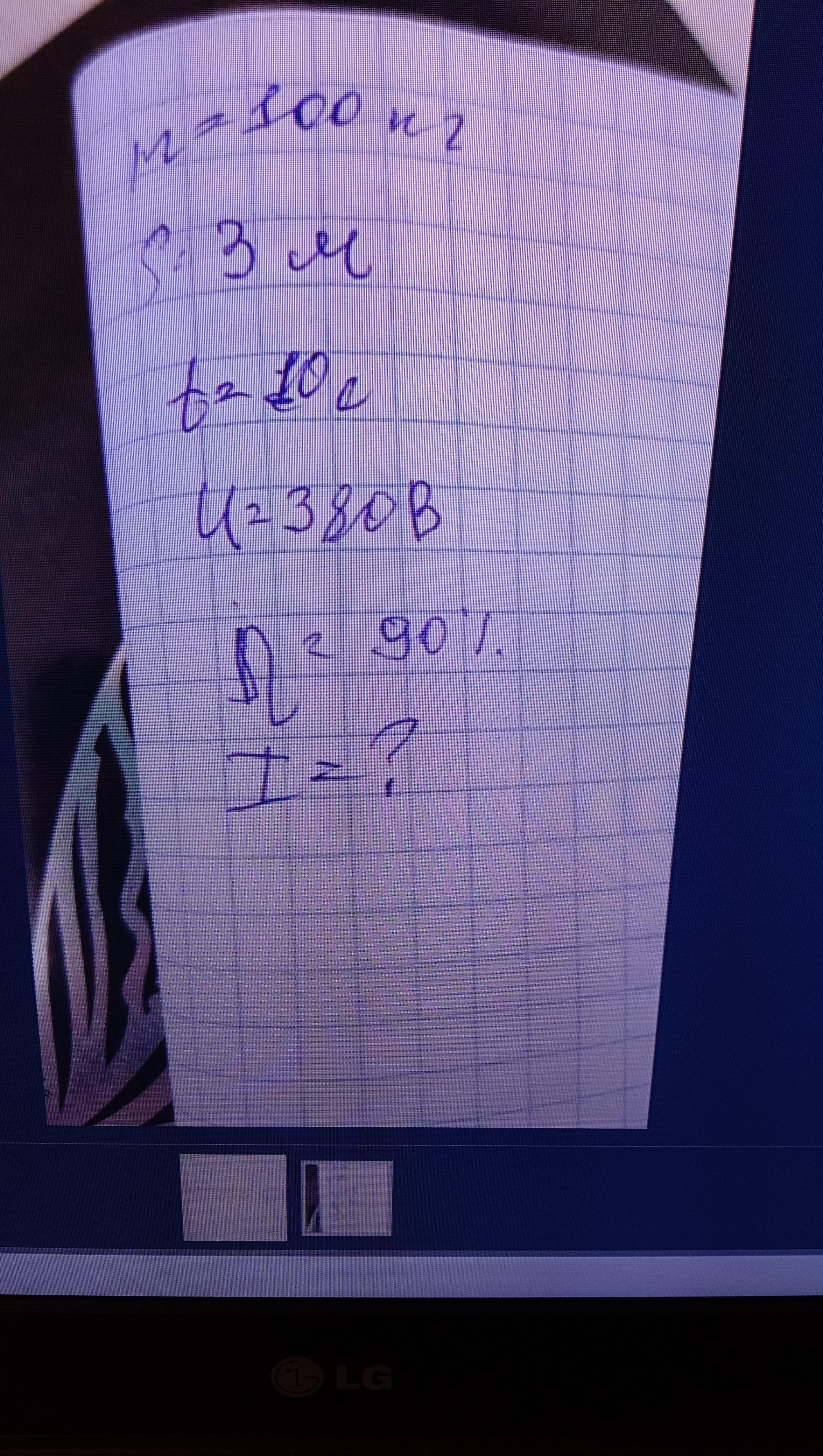 I=(100 кг*10 Н/кг*3 м/380 В*90*10 с)*100%=(3000 Н*м/342000 В*с)*100%=0,877 А