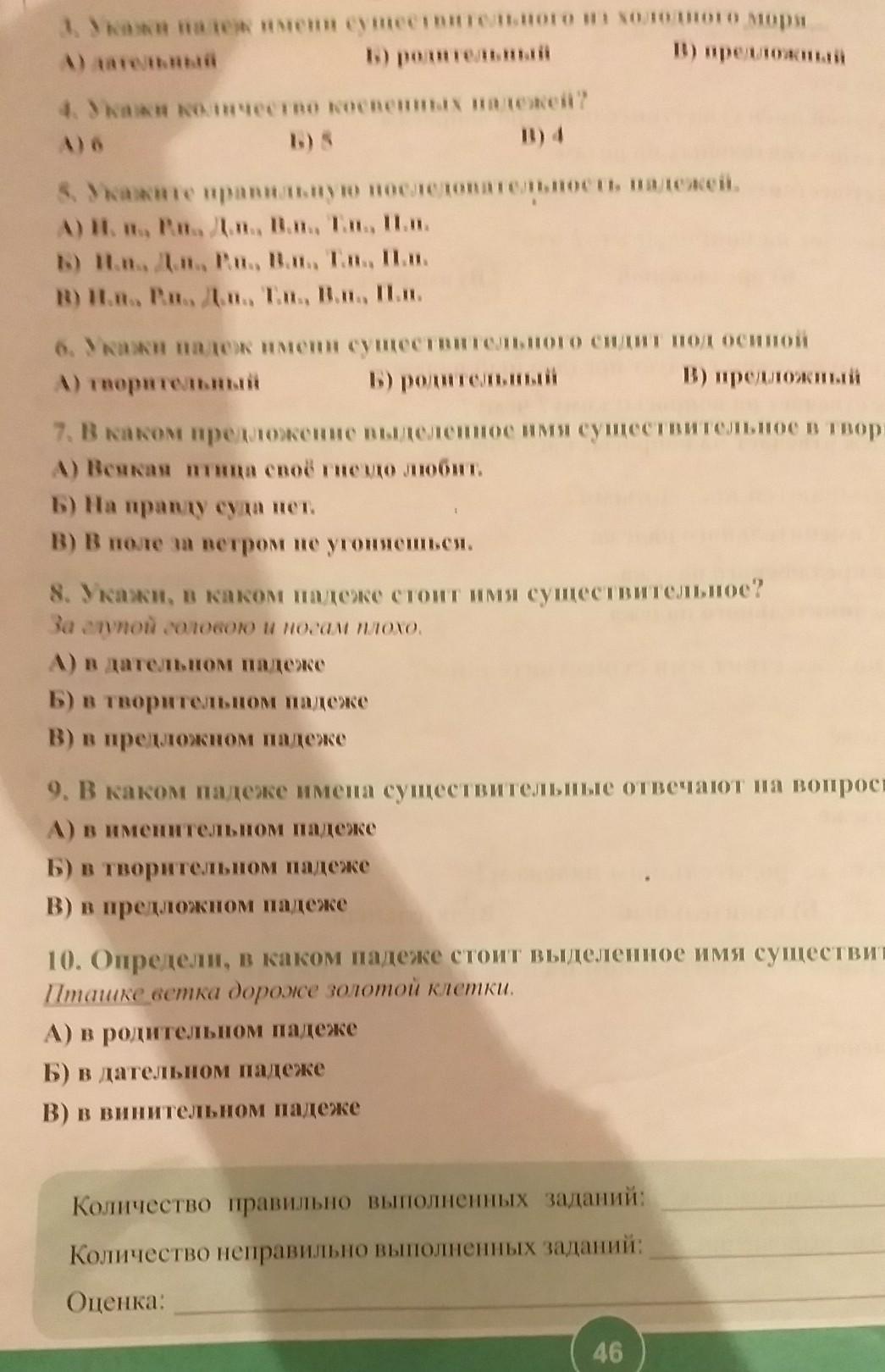 8. Укажи, в каком падеже стоит имя существительное?