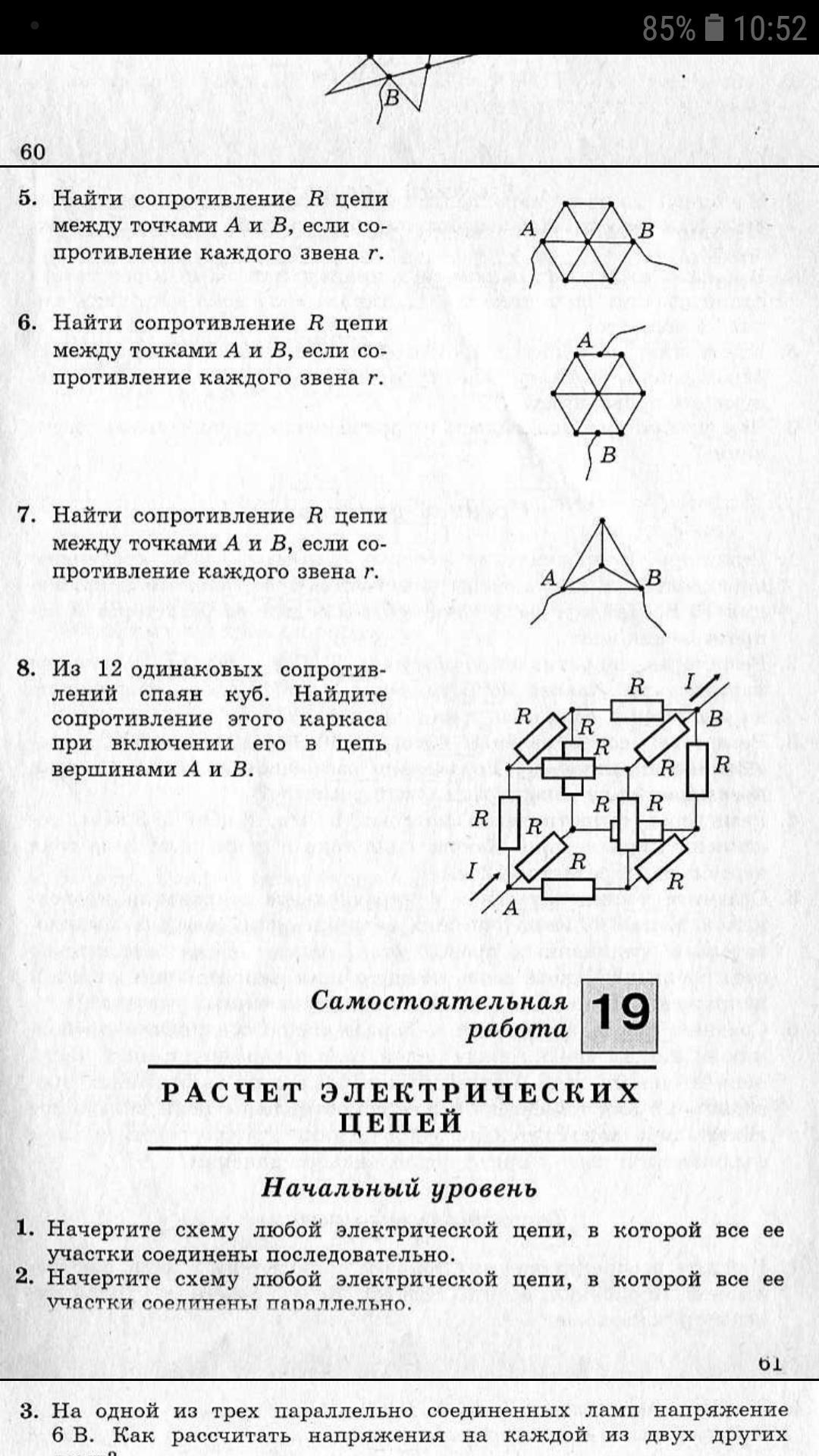 Привет! Если у кого-то есть задачники по физике 8 класс, то пришлите пожалуйста пару сложных задач на смешанное соединение проводников (попросили в шк найти и решить, а в инете все время попадаются с мостами Уитстона)