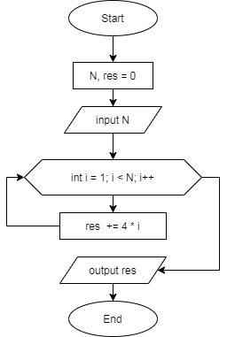 Используя цикл с постусловием, составить алгоритм вычисления суммы: F=4+8+12+16...+4*N, где N - вводится с клавиатуры.