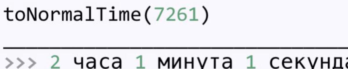 Язык Python. Модернизируйте функцию так, чтобы она выводила правильные спряжения слов для определенного количества часов минут и секунд (постарайтесь предусмотреть все варианты) Пример того, как может выглядеть решение: прикреплено фото