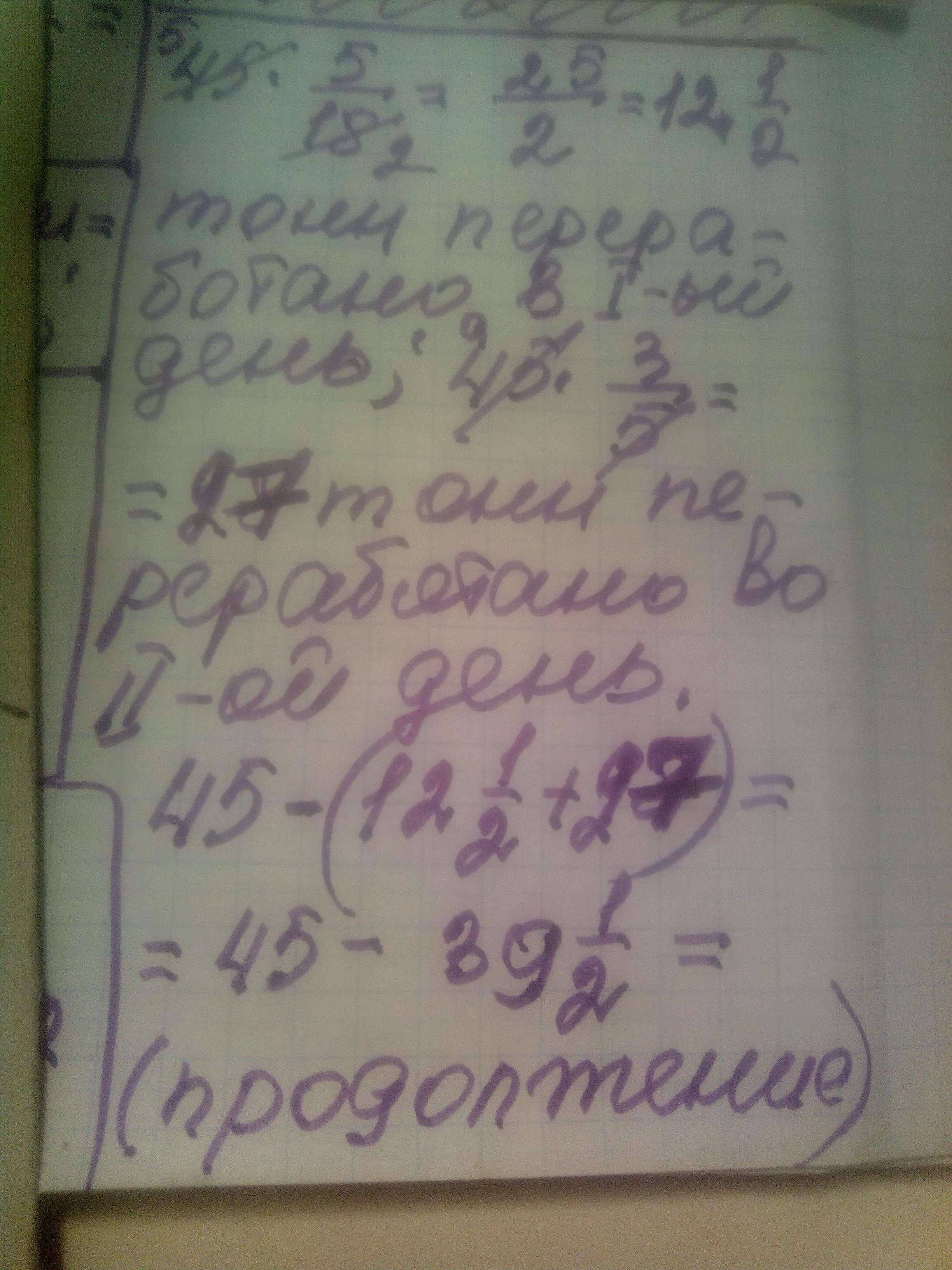 45*5/18=12,5 (т) ягід перероблено першого дня