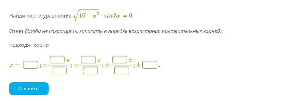 или x=pi*n/3, где n удовлетворяет ОДЗ (подкоренное выражеие больше 0) это значит , что решения 0,+-pi*/3,+-2pi*n/3, +-pi
