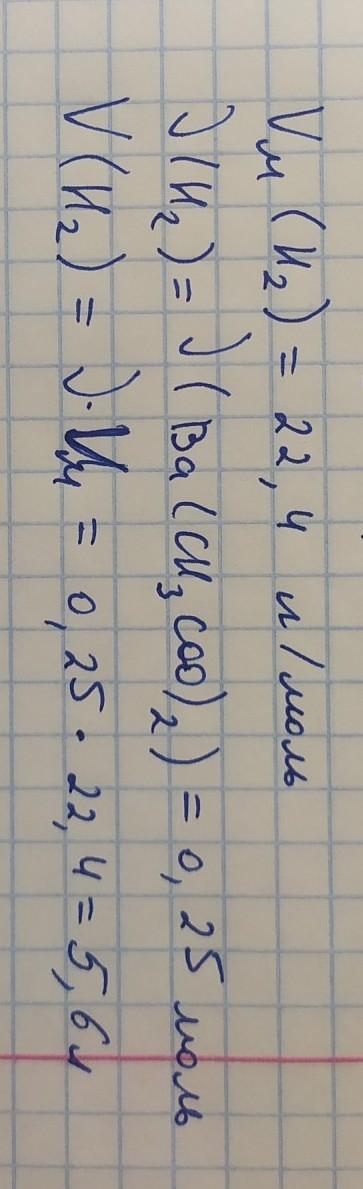 То есть, n(H₂) = n ((CH₃COO)₂Ba) = 0,25 моль