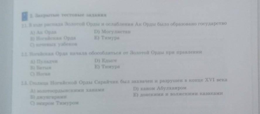 1. В ходе развала Золотой орды и ослабления Ак Орды было образовано государство Б) Ногайская орда.