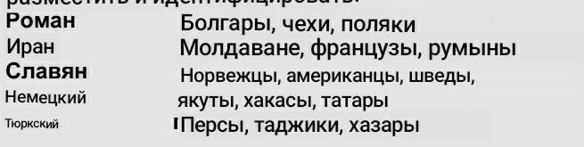 Тюрский - якуты, татары, хакасы, хазары, таджики.