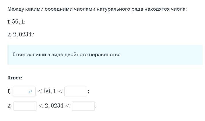 56<56.1<57 2<2.0234< 3 наверное так. зесь же сказано натуральные числа....