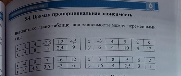 1. Выясните, согласно таблице, вид зависимости между переменными