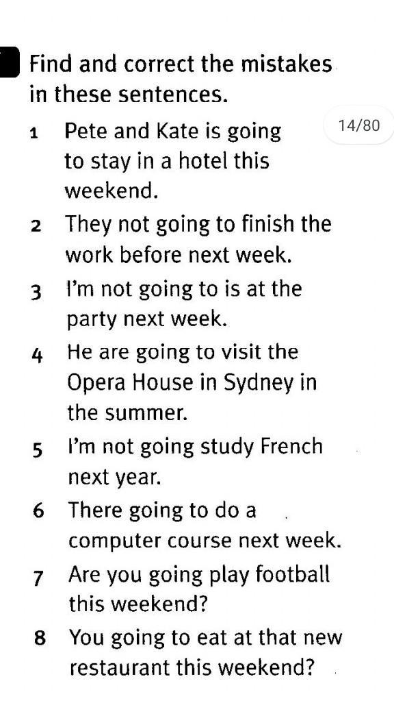 1. Pete and Kate ARE going to stay in a hotel this weekend (исправленные ошибки капсом буду писать)