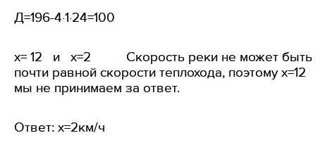 Если обозначить скорость течения реки Х то легко можно решить уравнением
