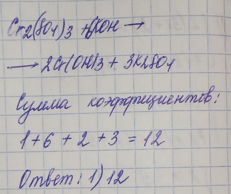 Cr2(SO4)3 + 6KOH → 2Cr(OH)3 + 3K2SO4 и сумма 12