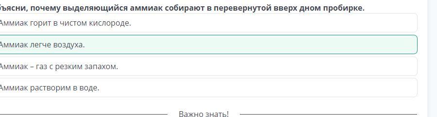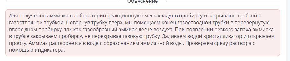 Пробирку со смесью хлорида аммония и гидроксида кальция прогрейте сначала всю (2—3 движения пламени), а затем нагрейте в том месте, где находится смесь.