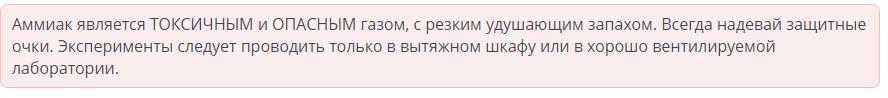 Оборудование: прибор для получения аммиака, NH4CI, Ca (OH)2, H2O, cтеклянные палочки, чашки Петри, фенолфталеин, нагревательный прибор, штатив