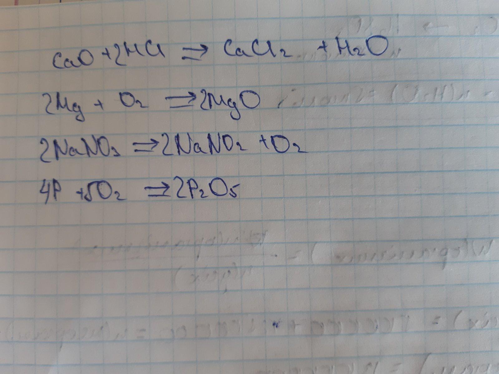 CaO + HCl → CaCl2 + Н2О; Mg + О2 → MgO;