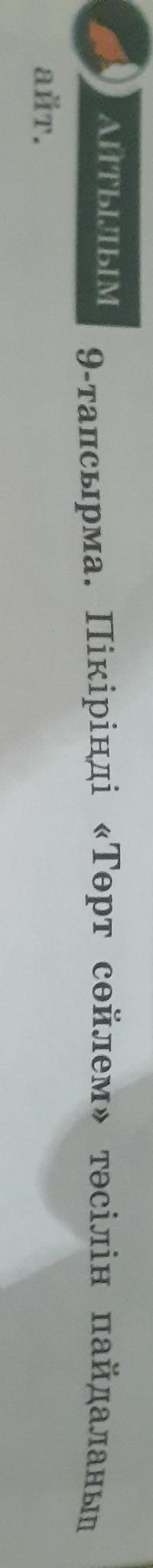 9 тапсырма.Пікіріңді "Төрт сөйлем" тәсілін пайдаланып айт.