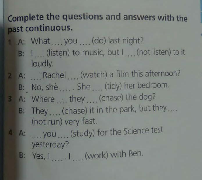 4 - A: W̲e̲r̲e̲ you s̲t̲u̲d̲y̲i̲n̲g̲ for the Science test yesterday?