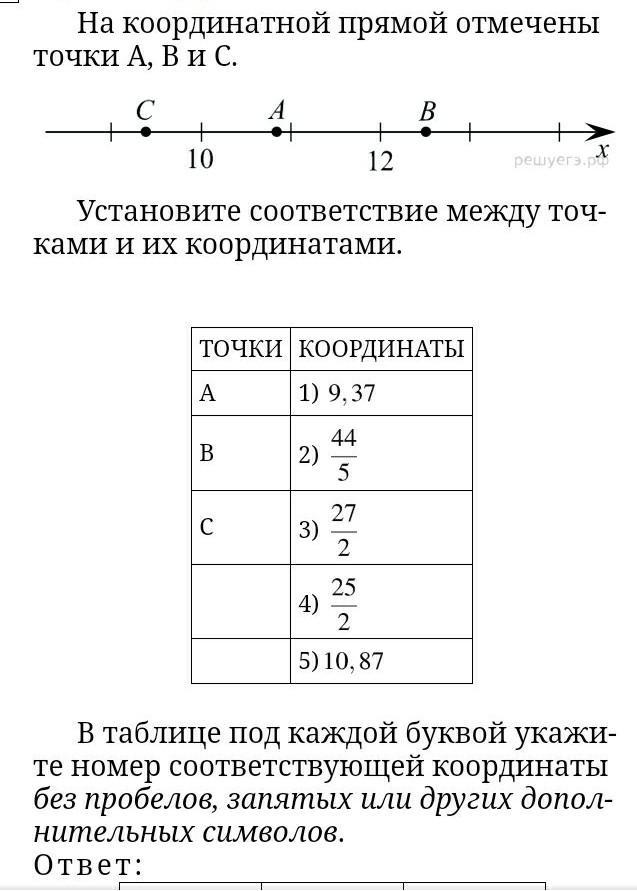 на координатной примой отмечены точки A,B и C :установите соответствие между точками и их координатами