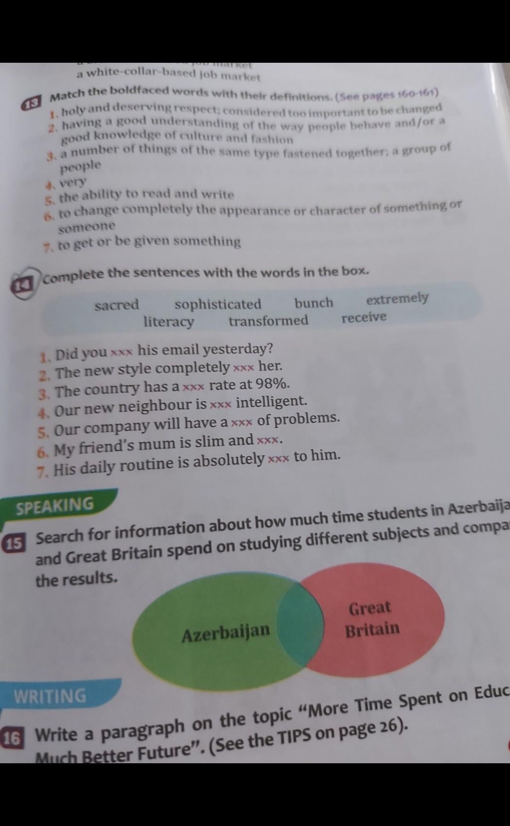 1) receive 2) transformed 3)literacy 4) extremely 5)bunch 6)sophisticated 7)sacred (неуверенна на счёт 3,6,7)