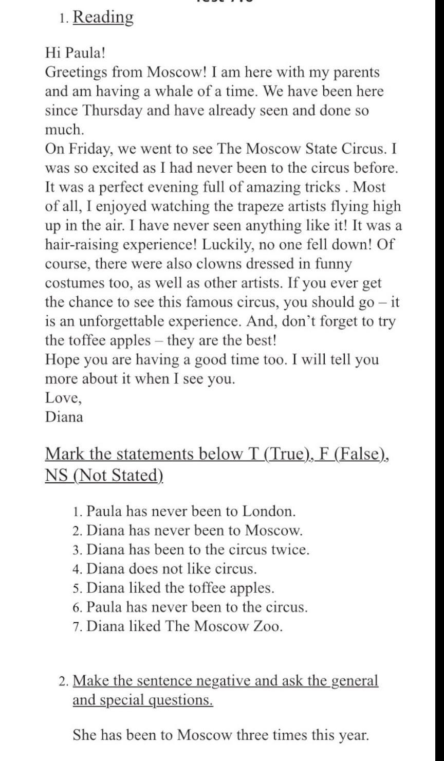 7. False (she liked The Moscow State Circus.